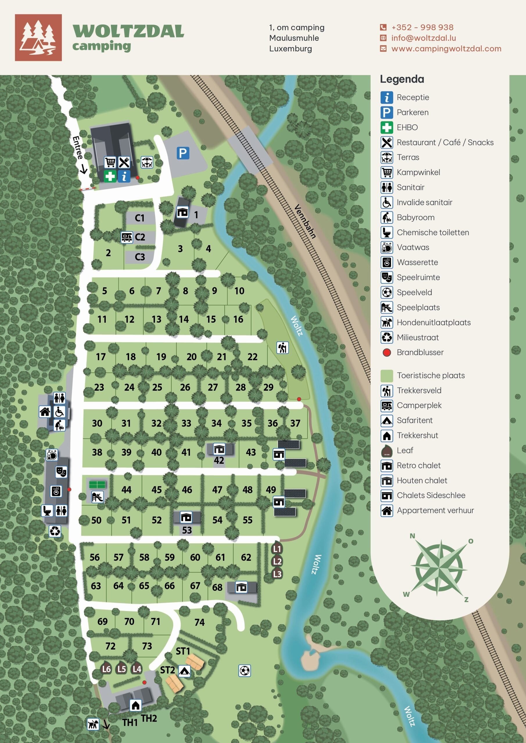 Sie campen hier in Reihen immer in der Nähe des Flüsschens Woltz. Es gibt spezielle Plätze für Wohnmobile und Wohnwagen, aber auch für (Wander-)Zelte und Faltanhänger. Genießen Sie morgens die frischen Brötchen und lauschen Sie dem Plätschern des Baches im Hintergrund. Der Campingplatz ist beliebt bei Wanderern, Naturliebhabern und Radfahrern. Sie können hier hervorragend Mountainbiken und Radfahren. Die Mitarbeiter von Woltzdal sind immer bereit, Ihnen zu helfen. Erleben Sie Luxemburg von seiner schönsten Seite. Genießen Sie die Campingeinrichtungen, vergnügen Sie sich im Fluss, auf dem Sportplatz und entdecken Sie die Möglichkeiten des Woltzdals.