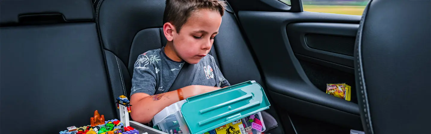 Eine Autoreise mit Kindern kann großartig sein: Sie haben die Freiheit, dorthin zu fahren, wohin Sie wollen, und anzuhalten, wann es Ihnen passt. Außerdem können Sie so viel Gepäck mitnehmen, wie in oder auf Ihr Auto passt, was bei einer Flugreise anders ist. Aber fair ist fair: Mit Kindern auf dem Rücksitz ist nicht immer alles rosig. Oft wird die Situation auf dem Rücksitz schnell zum Schlachtfeld: "Er fasst mich an!", "Sie schikaniert mich!", "Er atmet so nervig!" oder "Mir ist langweilig" sind Kommentare, die jeder während einer langen Autofahrt kennt, ganz zu schweigen von dem "Sind wir bald da?", wenn man gerade aus der Stadt herausfährt.