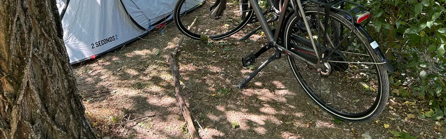 Kurz vor den Ferien hat sich unser Teenager einen Bänderriss im Knöchel zugezogen. Große Schwellung, Druckverband, Bein hoch, Rollstuhl und Krücken. Einen Moment lang dachte ich, wir könnten den Urlaub absagen, aber innerhalb von zwei Wochen konnte sie mit einer stabilen Schiene aus dem Krankenhaus wieder laufen. Zum Teil, denn an lange Strecken war noch nicht zu denken. Tagelang spielten wir mit dem Gedanken, den Rollstuhl doch noch in den Wohnwagen zu packen. Aber einen Tag vor der Abreise hielten wir das für unnötig. Wir warfen die Krücken sicherheitshalber hinten in den Wagen und nahmen unsere beiden Fahrräder mit. Beide mit einem Kind auf dem Rücken, das schaffen wir doch, oder?
