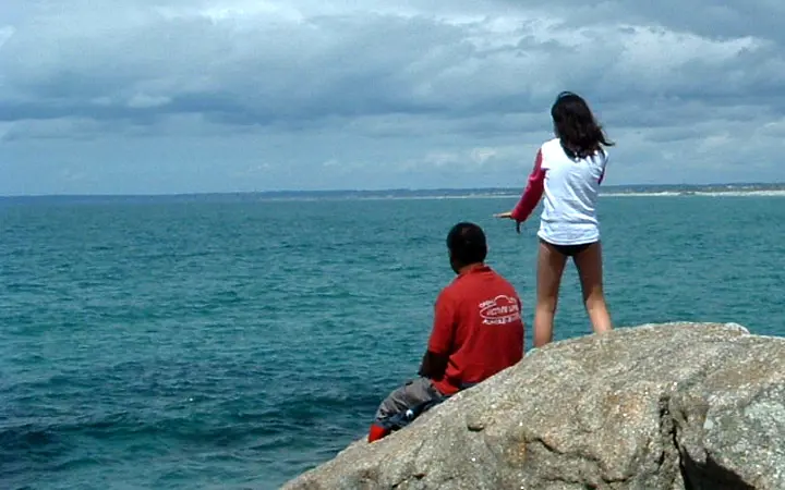 Und dafür sind wir nach Douarnenez (do-aarnenee) gefahren. Mann, war dieser Campingplatz schwer zu finden! Steile Straßen bergauf, dort, wo das Navi es anzeigte, war eine Ruine, fast alles war Einbahnstraße und sehr eng. Also wieder, und wieder und wieder und plötzlich war der Eingang da. Wir schauten uns das Gelände an, sahen die schöne Natur, das Hauptgebäude und dachten beide, dass dies ein Campingplatz sei, der unser Budget weit übersteigen würde. Aber müde und verzweifelt beschlossen wir, das als gegeben hinzunehmen.