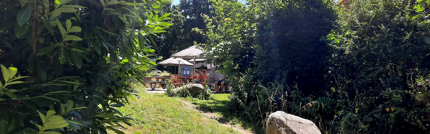 Was ich übrigens bei vielen neuen Huttopias bedauerlich finde, ist, dass die Gastronomie und der Gemeinschaftsraum in einem Gebäude untergebracht sind; das heißt, wenn die Gastronomie schließt, muss auch das Gebäude geschlossen werden. Sonst würden wir selbst den Hahn zudrehen. Das nimmt aber ein bisschen den Gemeinschaftssinn; man kann sich jetzt nicht mehr bei Regen unterstellen, wenn das kleine Zelt irgendwo fast weggespült wird. Man nimmt auch nicht mehr so schnell die eigene Weinflasche und die Gläser mit rein, obwohl das im Prinzip möglich sein sollte.