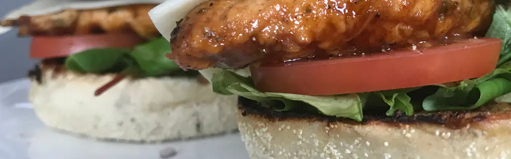 Wenn Sie Ihren Burger medium-rare wollen (wie ich), braucht er nur 3 Minuten pro Seite. Das ist auch die Zeit, die dein Burger braucht, um eine schöne Kruste zu bekommen. Nach dem ersten Wenden legst du deine Käsescheibe darauf, damit sie schön mitschmelzen kann. In der Zwischenzeit bestreichen Sie den unteren Teil Ihres Brötchens mit einer schönen Sauce, legen etwas Salat und ein paar Tomatenscheiben darauf. Dann den Burger, einen weiteren Klecks Soße und zum Schluss den oberen Teil des Brötchens. Guten Appetit!