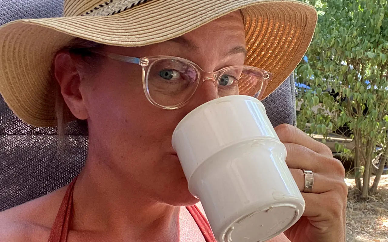 Damit es in der Kühlbox schön kalt bleibt, lege ich immer eine Flasche mit gefrorenem Wasser hinein. Eine solche gefrorene Wasserflasche wirkt in diesem Fall wie ein Kühlelement. Und wenn sie nach einer Weile auftaut, kann man sie für Kaffee, zum Zähneputzen oder zum Trinken verwenden.
