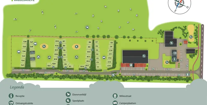 Die jetzigen Eigentümer haben den Campingplatz im Jahr 2020 eröffnet. Sie sehen, dass alles neu und blitzblank ist, von den Sanitäranlagen bis zu den Spielgeräten. Was sie noch wichtiger finden, ist, dass die Atmosphäre persönlich, ansprechend und gemütlich ist. Die verschiedenen Campingplätze sind halbkreisförmig angelegt, so dass Sie immer einen Blick auf die Tierweide haben, die parallel zum Campingplatz verläuft. Wählen Sie vorzugsweise einen Stellplatz in der Nähe eines Spielplatzes, einen Stellplatz, zu dem auch Ihr Hund mitkommen kann, oder einen Stellplatz mit eigenen sanitären Anlagen. Letztere sind mit Dusche, Waschbecken, Heizung, Kochplatten und sogar einer Spülmaschine ausgestattet! Es gibt auch eine Reihe von 6-Personen-Holzhütten zu mieten. Diese Lodge liegt auf einem Campinggelände mit Spielgeräten und verfügt über eine gute Küche, einen schönen Esstisch, eine Klimaanlage und 3 Schlafzimmer.