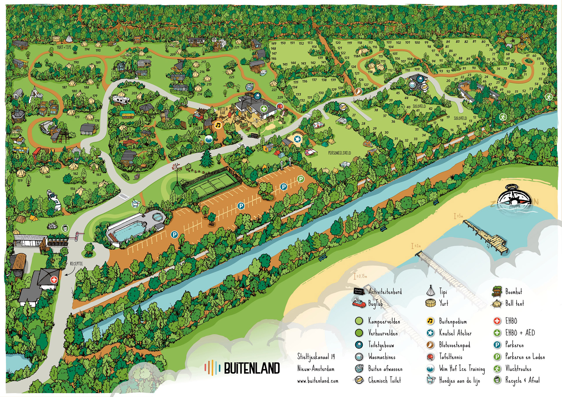Alle Mietunterkünfte werden von den Menschen selbst gebaut. Die Eigentümer bestimmen selbst den Preis und die Verfügbarkeit ihrer Unterkünfte. Und es sind wirklich nur besondere Exemplare darunter. Eine kleine Auswahl: die blaue Scheune, die freie Kuppel, die Spaghettikirche oder New Amsterdam arrow. Die Unterkünfte reichen von 2 bis 6 Personen und einige sind auch im Winter verfügbar. Auch dann ist es auf dem Campingplatz Buitenland außergewöhnlich schön und besonders ruhig.