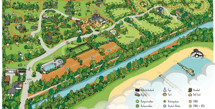 Bei der Ankunft wählt jeder seinen eigenen Platz auf diesem farbenfrohen und schrulligen Campingplatz. Mit einem goldenen Greenkey-Zertifikat in der Tasche in Sachen Nachhaltigkeit sind die Besitzer noch voller Pläne für die Zukunft. An der Bar im Freien, dem Treffpunkt des Campingplatzes, gibt es eine große Auswahl an Bio-Produkten aus fairem Handel und der Region. Die Krönung sind sicherlich die handgeschnittenen Kroketten, die auch Vegetariern schmecken können. Dann haben Sie die Wahl, worauf Sie Lust haben: Schwimmen im kleinen See mit Sandstrand, Hüttenbau im angrenzenden Wald oder doch lieber Sport auf einem der Sportplätze? Außerhalb der Wochenenden werden auch Solo-Retreat-Pakete angeboten. Sehr empfehlenswert für alle, die wieder in Kontakt mit sich selbst kommen wollen, und gemütlich ist es auch. Lassen wir den Tag im Whirlpool, am Lagerfeuer oder auf der Bühne mit Live-Musik ausklingen?