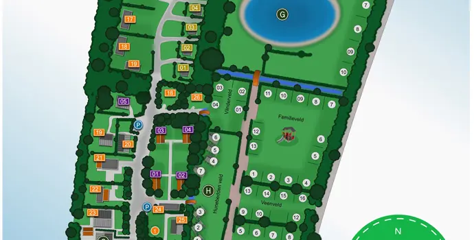 Das Familienfeld ist ein idealer Ort für Familien mit Kindern. Hier haben Sie einen Blick auf den Spielplatz in der Mitte des Feldes. Mehr Ruhe finden Sie rund um den Fischteich oder auf einem der kleineren Campingplätze. Der beheizte Außenpool ist bei Jung und Alt beliebt, ebenso wie der Aufenthaltsraum für ein Spiel, eine Zeitschrift oder einen Plausch. Für die Kinder gibt es in den Sommerferien täglich eine Stunde Unterhaltung. Zum Beispiel Schnitzeljagd, Basteln oder Wasserspiele. Noch mehr Spaß gibt es auf dem Wasserspielplatz, im Streichelzoo oder bei einer Fahrt mit den Go-Karts und Tretautos auf dem Campingplatz. In der Vor- und Nachsaison ist der Campingplatz Emmen ein beliebter und sehr ruhiger Ort für Wanderer, Radfahrer und Wohnmobilisten.