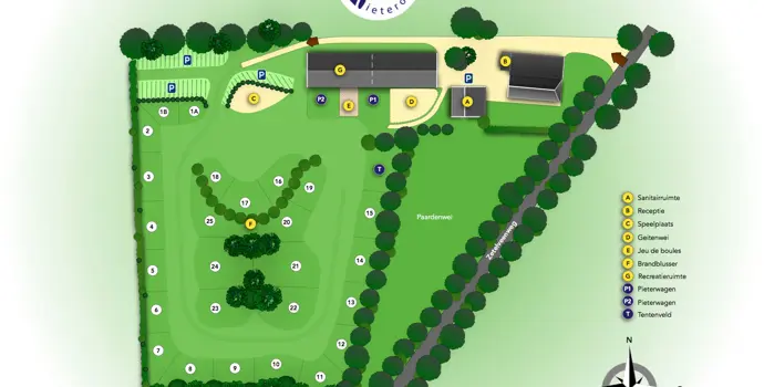 Minicamping Pieterom ist ein schöner, parkähnlicher Minicampingplatz in Drenthe. Sie finden ihn in dem schönen und authentischen Dorf Sleen am Fuße des Hondsrug im Südosten von Drenthe. Camping Pieterom ist Mitglied von VEKABO und ein ausgewählter kleiner Campingplatz des ANWB. Suchen Sie Ruhe und Frieden, aber auch Gemütlichkeit, Freundlichkeit und Gemütlichkeit? Bei uns werden Sie das finden und bekommen. Genießen Sie die großzügigen Stellplätze und die schöne Aussicht des Campingplatzes.