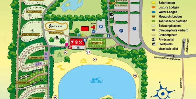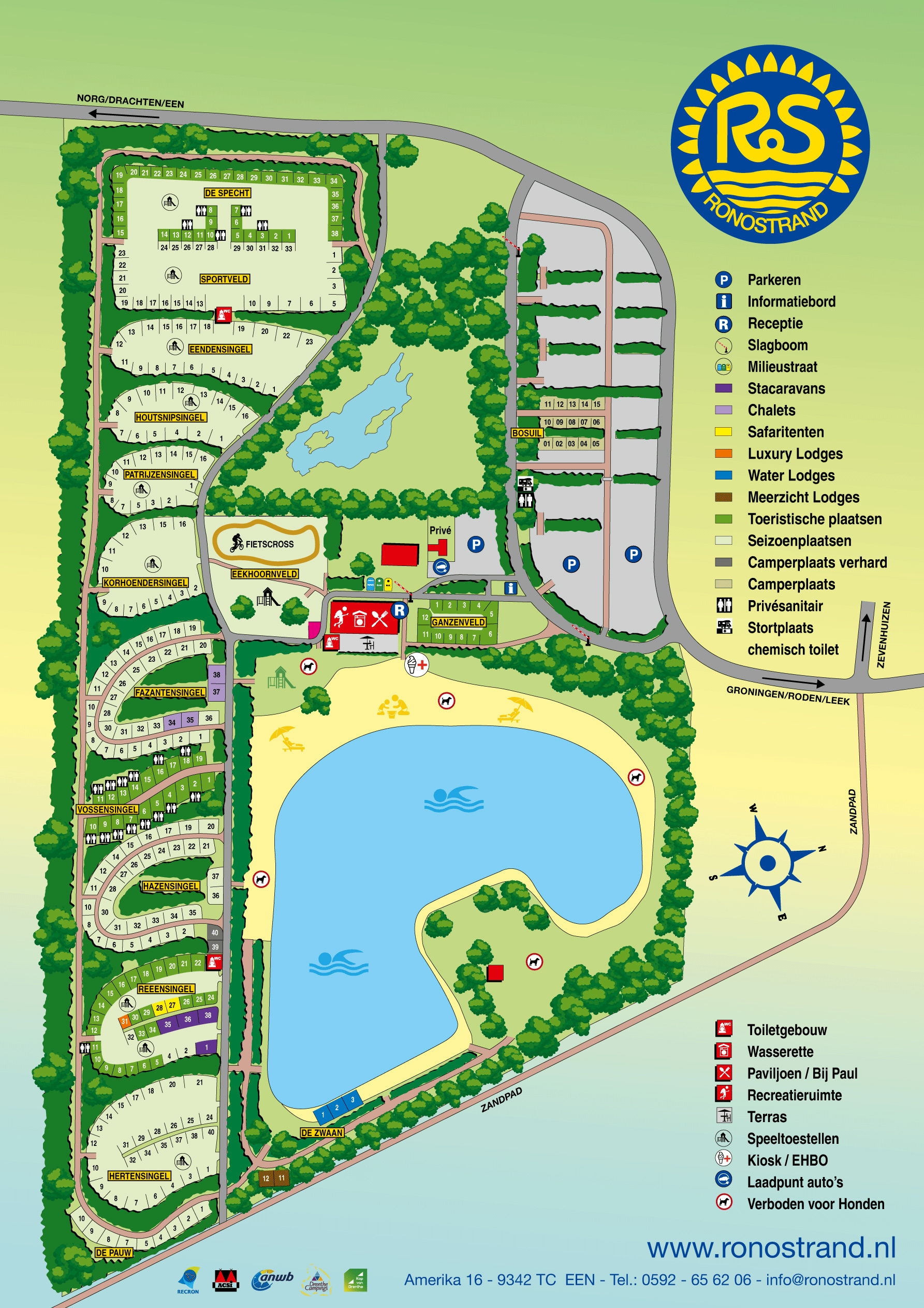 Ein einzigartiger Strandurlaub am Rande des Waldes. Der Campingplatz Ronostrand liegt an einem Erholungssee in der Landschaft von Drenthe. Sie können auf diesem freundlichen Familiencampingplatz zwischen den Wäldern und auf abgegrenzten Rasenflächen campen. Die Kinder werden sich bestimmt amüsieren, es gibt ein Animationsteam Rik und Sunny, einen Abenteuerspielplatz, eine natürliche Fahrradcrossstrecke und sie können am Strand schwimmen und spielen.
