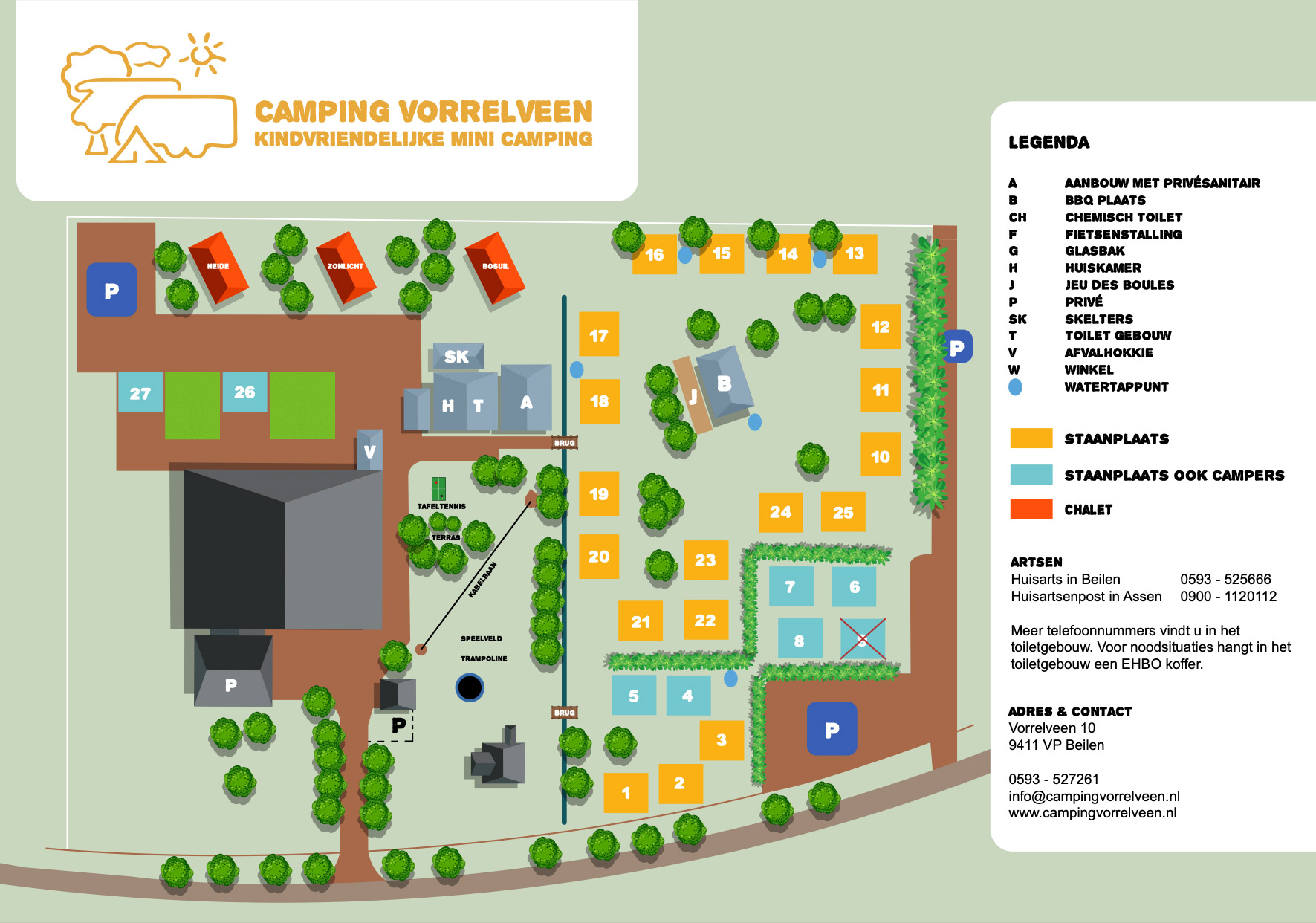 Auch wenn Sie kein eigenes Zelt oder Wohnwagen haben, sind Sie auf dem Campingplatz Vorrelveen willkommen. Auf dem Campingplatz gibt es drei komfortable Chalets, die für 4/5 Personen geeignet sind. Die Chalets haben eine Veranda, auf der Sie auch dann sitzen können, wenn die Sonne noch nicht so stark scheint. Mit dem kostenlosen Wifi auf dem Campingplatz können Sie ganz einfach die Wettervorhersage für die nächsten Tage abrufen.