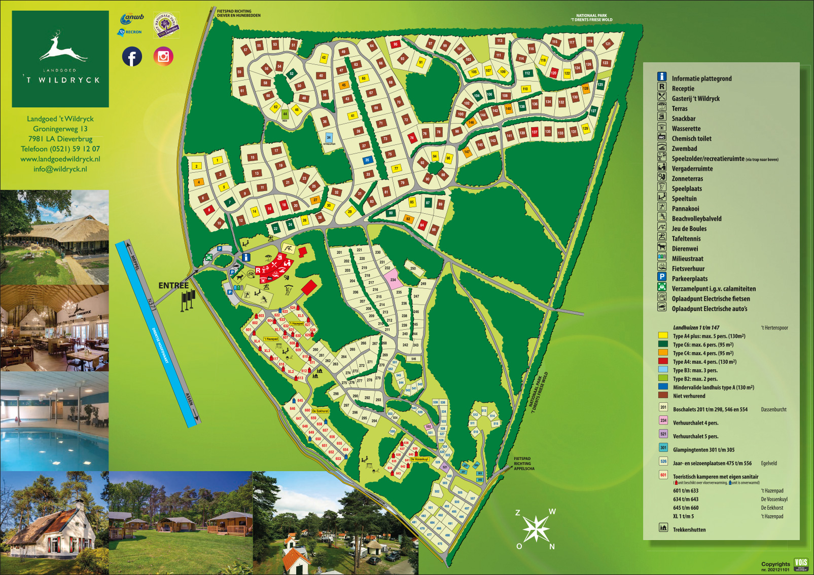 Bei Ihrer Ankunft in Diever in der Provinz Drenthe finden Sie alle Einrichtungen dieses Ferienparks direkt am Eingang. Der grüne Campingplatz läuft spielerisch nach hinten durch. Bestellen Sie Ihre Brötchen im Voraus in der praktischen App, damit Sie schon um 9.00 Uhr im Pool schwimmen können. Auf Landgoed 't Wildryck können Sie übrigens das ganze Jahr über campen oder in einer der Lodges, Chalets oder Ferienhäuser wohnen. Haben Sie Zweifel, ob Wintercamping etwas für Sie ist? Dann entscheiden Sie sich für einen geräumigen Stellplatz mit eigenen Sanitäranlagen, die mit Fußbodenheizung ausgestattet sind. Besonders im Winter finden Sie hier Ruhe und Frieden. Bringen Sie auf jeden Fall Ihren vierbeinigen Freund mit, denn dieser Park ist feuerwerksfrei.