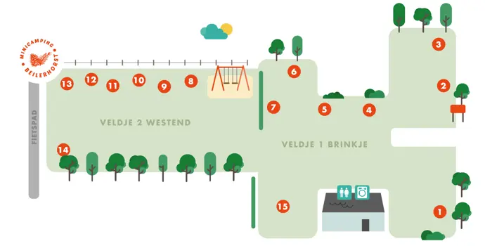 Auf zwei Feldern sind 15 schöne Stellplätze entstanden. In zentraler Lage befinden sich das Sanitärgebäude und ein Kinderspielplatz. Auch Ihr vierbeiniger Freund ist auf diesem Campingplatz willkommen. Für die Verpflegung und die täglichen Einkäufe können Sie nach Beilen fahren, das 2 km vom Campingplatz entfernt liegt. Der Campingplatz stellt Ihnen gerne einen Fahrradverleih zur Verfügung. Der Terhorsterzand mit seinem großen Naturbadesee ist nur wenige Gehminuten vom Campingplatz entfernt.