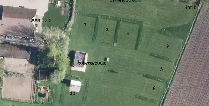 Auf diesem über 5000 m² großen Campingplatz finden Sie zwölf geräumige 130 m² große Stellplätze, einen großen Zentralbereich, ein Sanitärgebäude und einen Parkplatz. Der Campingplatz ist autofrei, das heißt, dass die Autos während Ihres Aufenthalts auf dem Parkplatz und nicht auf dem Stellplatz abgestellt werden. Für den Transport Ihrer Einkäufe gibt es einen Wagen. Natürlich dürfen Sie bei der An- und Abreise mit dem Auto auf den Platz fahren. Wohnmobile sind ebenfalls willkommen. Sie ziehen es vor, Camper so nah wie möglich am Eingang zu platzieren.