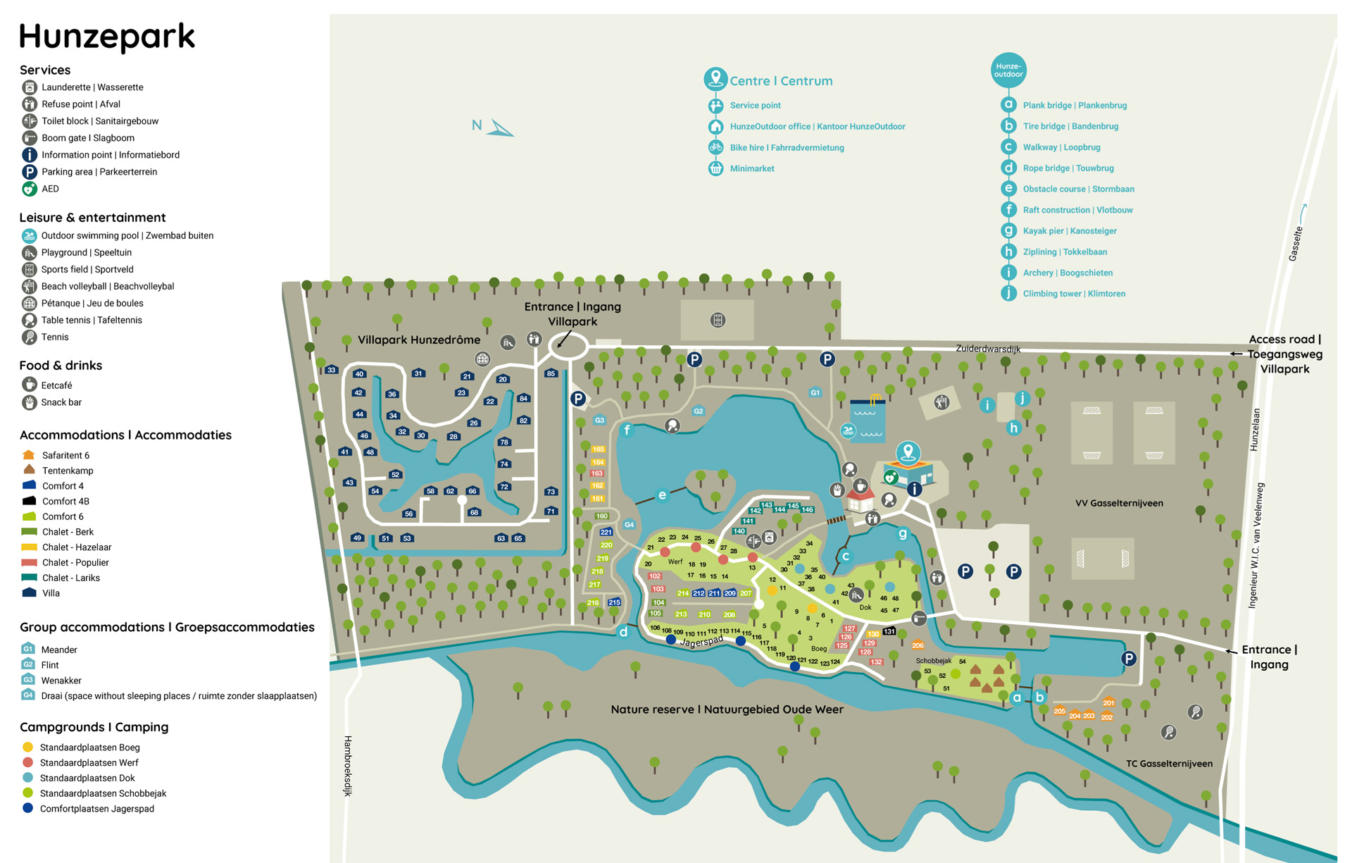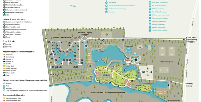 Sind Sie bereit für einen anspruchsvollen Campingurlaub voller Outdoor-Aktivitäten? Dann ist der Campingplatz Hunzepark der richtige Ort für Sie. Der vielseitige Park bietet viele Outdoor-Möglichkeiten wie einen Kletterturm, eine Seilbahn, einen Parcours und einen Steg. Sie können auch stundenlang durch die fantastische Landschaft von Drenthe wandern. Außerdem gibt es ein schönes Freibad!