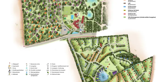 Sie haben keine eigene Campingausrüstung, möchten aber trotzdem den ganzen Spaß auf diesem Campingplatz genießen? Dann wählen Sie eine der vielen Glamping-Unterkünfte des Parks. Neben dem Campingbereich gibt es auch einen Bungalowpark, der zusammen den Ferienpark Westerbergen bildet. Die Heidechalets und Plaggenhütten verfügen über eine luxuriöse Ausstattung wie einen Palettenofen, eine Spülmaschine, eine begehbare Dusche und eine Klimaanlage. Die Glamping-Safari-Lodges hingegen sind supercool. Wählen Sie die Unterkunft, die zu Ihnen passt. Wir haben noch einen Tipp für Sie: das XXL-Baumhaus mit VIP-Service und Jacuzzi! Der Bungalowpark ist das ganze Jahr über geöffnet. In der Winterzeit ist der Park besonders schön dekoriert und es gibt spezielle Party-Pakete. Außerdem gibt es viele Indoor-Einrichtungen, so dass Sie sich nicht langweilen werden!