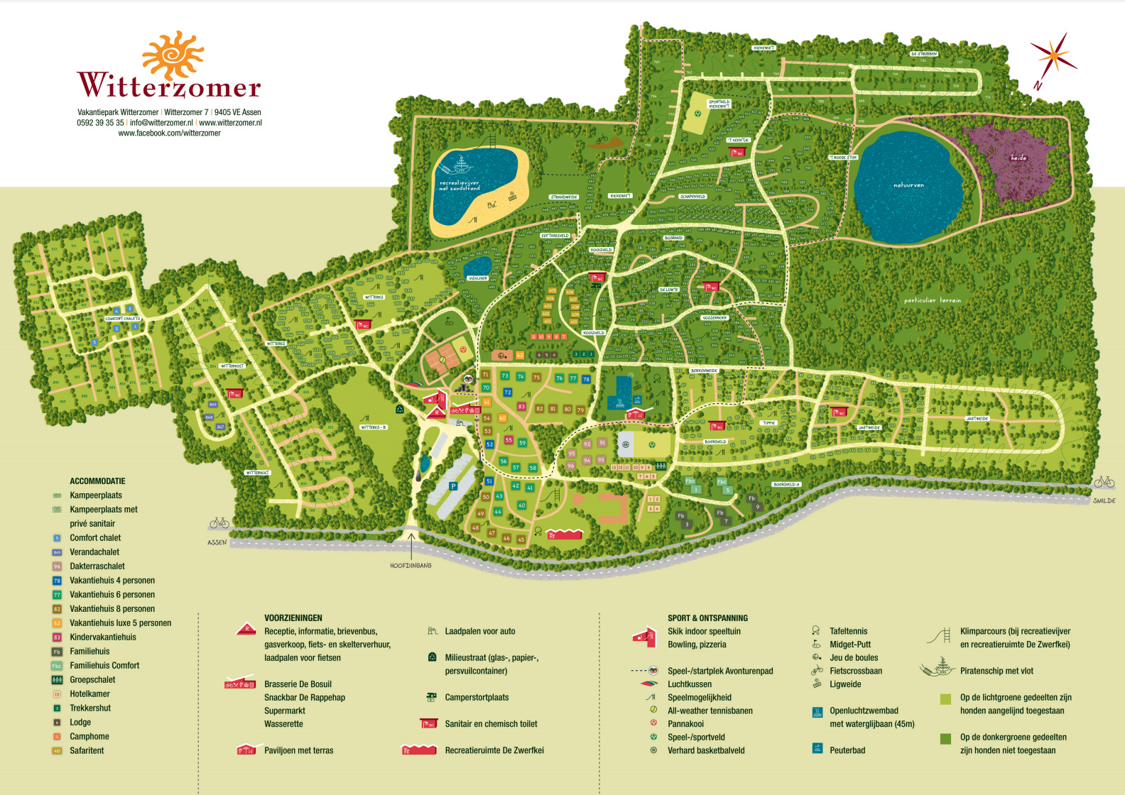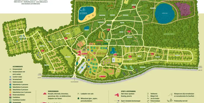 Der Ferienpark Witterzomer ist ein großer, lebendiger Familienpark in einem waldreichen Gebiet in Drenthe. Für Kinder gibt es viel zu tun, unter anderem einen Indoor-Spielplatz, ein Freizeitprogramm, einen Abenteuerpfad und verschiedene Spielplätze. Der Ferienpark Witterzomer verfügt über einen großen, von Bäumen geschützten Schwimmteich mit einem Sandstrand. Hier kann man nicht nur sonnenbaden und schwimmen, sondern es gibt auch spezielle Spielgeräte im Wasser.