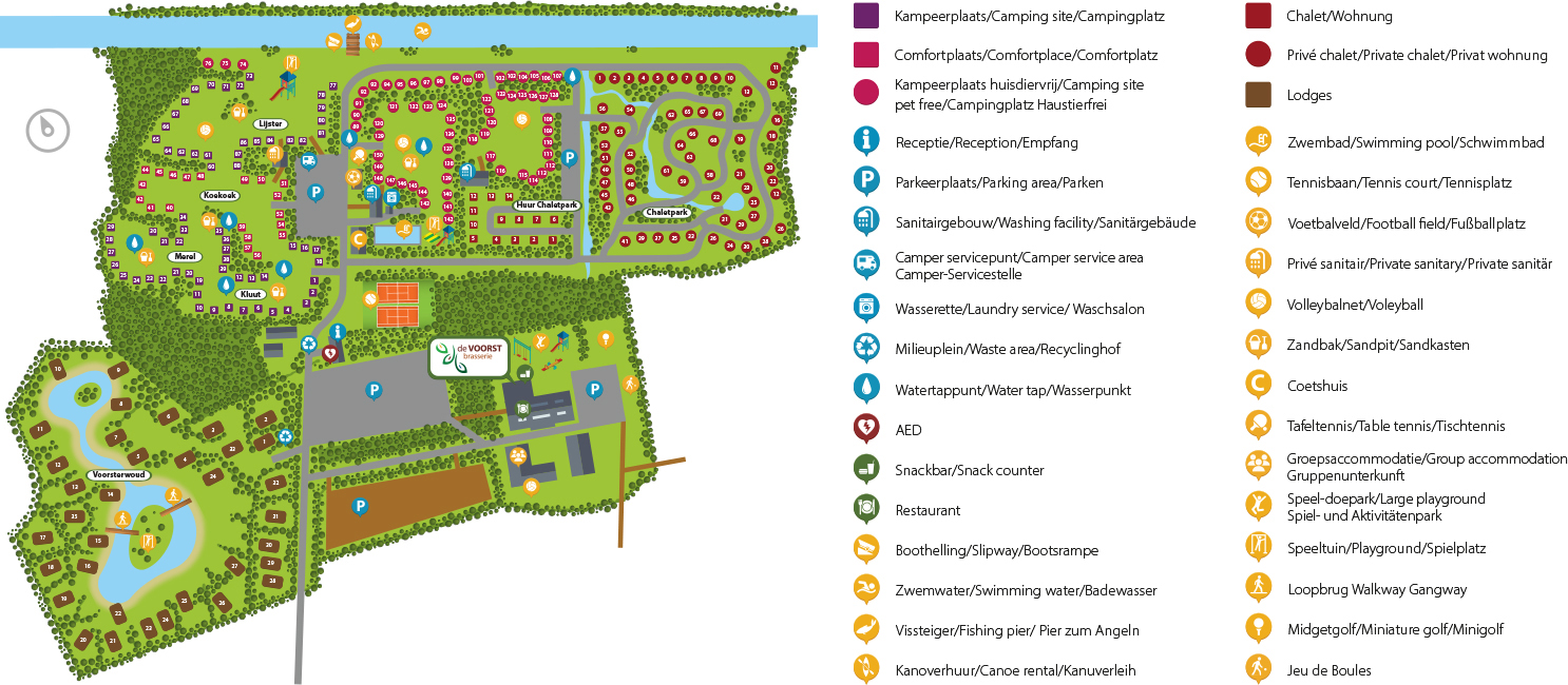 Recreatiepark de Voorst ist ein vielseitiger Erholungspark mit einem Campingplatz, Mietchalets, Gruppenunterkünften und einem luxuriösen Lodgepark. Er liegt in einem wunderschönen Naturschutzgebiet mit dem Voorsterbos als Vor- und Hintergarten und ist der ideale Ort, um sich zu entspannen und die Ruhe und Weite zu genießen.