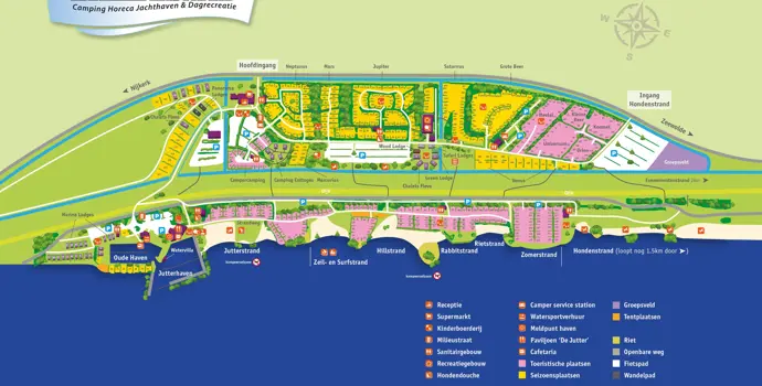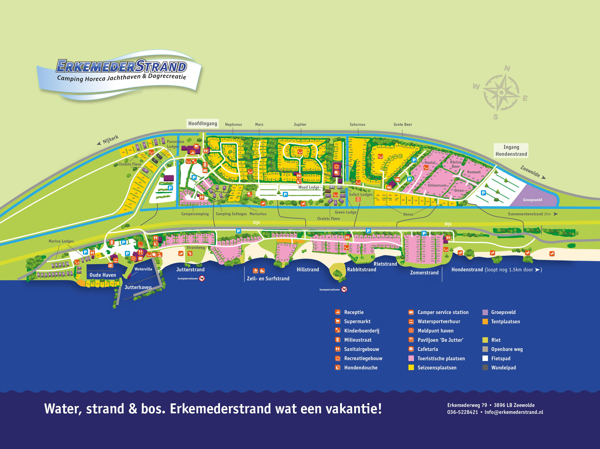 Auf diesem Campingplatz gibt es für jeden Camper einen passenden Platz. Es gibt Stellplätze direkt am Wasser oder am Deich, einen Jugendbereich, Gruppencamping, Saisonplätze und Stellplätze speziell für Camper. Wenn Sie Ihren vierbeinigen Freund mit in den Urlaub nehmen möchten, ist dieser Campingplatz ideal. Es gibt verschiedene Einrichtungen für Hundebesitzer wie einen privaten Strandabschnitt, eine Hundedusche und einen Hundeplatz. Auf diesem Platz können die Hunde in einem eingezäunten Bereich frei laufen. Auf dem Rest des Campingplatzes sind Hunde nur an der Leine erlaubt. Wenn Sie mit kleinen Kindern campen, ist ein Platz am Wasser möglicherweise nicht geeignet. Suchen Sie sich einen Stellplatz auf einem Familienplatz auf der anderen Seite des Deichs. Auf diesen Plätzen befindet sich in der Mitte ein Spielplatz. Ältere Kinder können auf dem autofreien Campingplatz im Spielwald, im Indianerdorf, im Panna-Käfig oder auf den Hüpfburgen spielen. Außerdem gibt es ein umfangreiches Freizeitprogramm. Auf dem Campingplatz Erkemederstrand wird es Ihnen wirklich an Zeit mangeln! Der Strand entlang des Campingplatzes ist nicht weniger als 3 Kilometer lang. Es gibt einen separaten Bereich für Surfer, Hunde, 2 Häfen und einen Spielbereich für Kinder. Auf dem Campingplatz gibt es eine Segel- und Surfschule. Neben den vielen Wassersportmöglichkeiten auf der Nuldernauw gibt es auch viele Sportplätze auf dem Campingplatz selbst. So kann die ganze Familie im Freien aktiv sein, ohne den Campingplatz verlassen zu müssen. Für das leibliche Wohl sorgen der große Campingshop und das Restaurant mit Blick auf das Wasser.