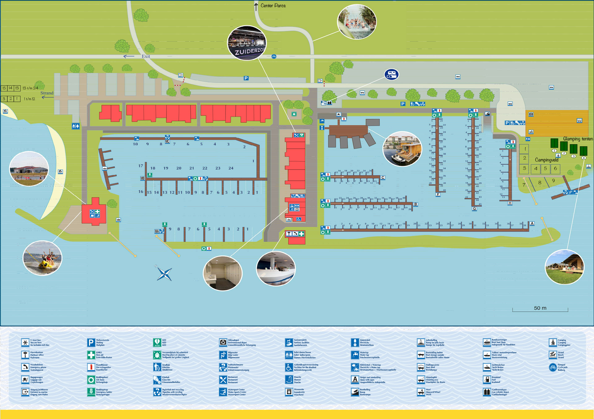 Über eine Abkürzung dazwischen sind Sie in wenigen Minuten auf der Plaza des Center Parcs de Eemhof. Der Supermarkt ist gut sortiert und jeden Tag geöffnet. Außerdem finden Sie hier verschiedene Restaurants und gemütliche Geschäfte. Das Center Parcs-Schwimmparadies 'Aqua Mundo' können Sie mit einer Ermäßigung von 20% besuchen. Ebenfalls im Jachthafen finden Sie die Brasserie Zuiderzoet und einen Beach Club für einen Snack und ein Getränk mit Aussicht.