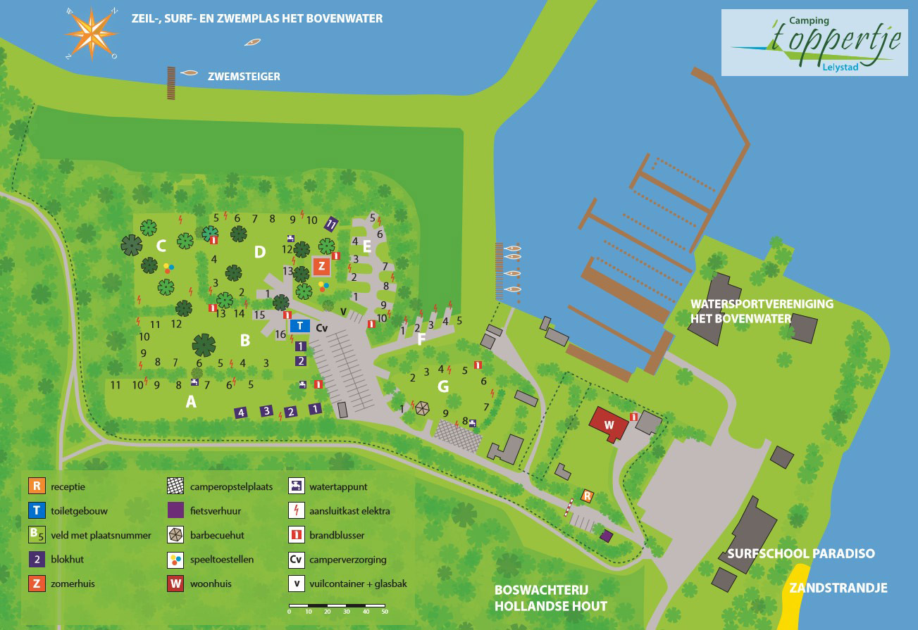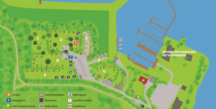 Und ein Steinferienhaus für vier Personen auf einem eigenen Grundstück mit viel Privatsphäre. Sie campen hier in einer wasserreichen Umgebung, denn der Campingplatz liegt am Segel-, Surf- und Badesee "het Bovenwater". Es gibt auch eine Surfschule, die Kanus, Surfbretter und Tretboote vermietet. Nur wenige Gehminuten entfernt befindet sich ein kleiner Sandstrand, an dem Kinder sicher spielen können. Auch auf dem Campingplatz selbst können sie sicher spielen, denn das Gelände ist autofrei und es gibt verschiedene Spielgeräte.