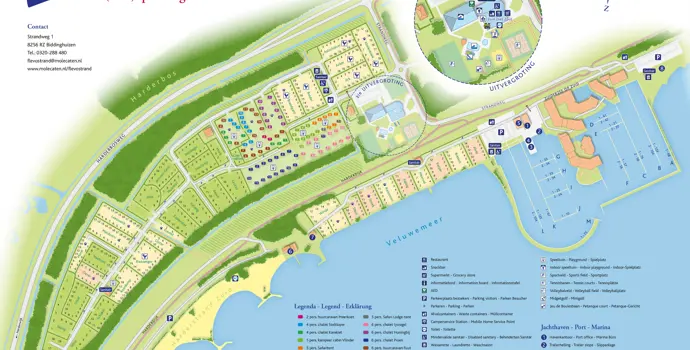 Der Park ist unterteilt in einen Strandcampingplatz, auf dem Sie direkt am Wasser campen und die Aussicht auf das Veluwemeer genießen können. Auf dem Innencampingplatz campen Sie näher an den zentralen Einrichtungen. Hier finden Sie auch die voll ausgestatteten Safarizelte, die Chalets mit Veranda und die luxuriösen, trendigen Campinghütten.