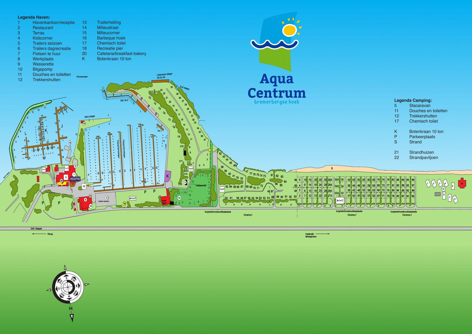 Sie wollten schon immer während Ihres Campingurlaubs surfen oder segeln lernen? Hier können Sie das! Sie können auch Ihr eigenes Boot mitbringen, denn der angrenzende Jachthafen hat nicht weniger als 500 Plätze und viele Einrichtungen. Die lange Mole von Bremerbaaistrand ist auch die Anlegestelle für die Fahrradfähre zur Veluwe. Wenn Sie Ihre eigenen Fahrräder nicht mitgebracht haben, können Sie sie auf dem Campingplatz ausleihen. Das ist auch praktisch, wenn Sie einen Tag im Freizeitpark Walibi verbringen möchten, denn dieser ist ebenfalls mit dem Fahrrad vom Campingplatz aus zu erreichen. Nach Ihrer Rückkehr erwartet Sie der Strandpavillon mit den leckersten Snacks und Getränken.