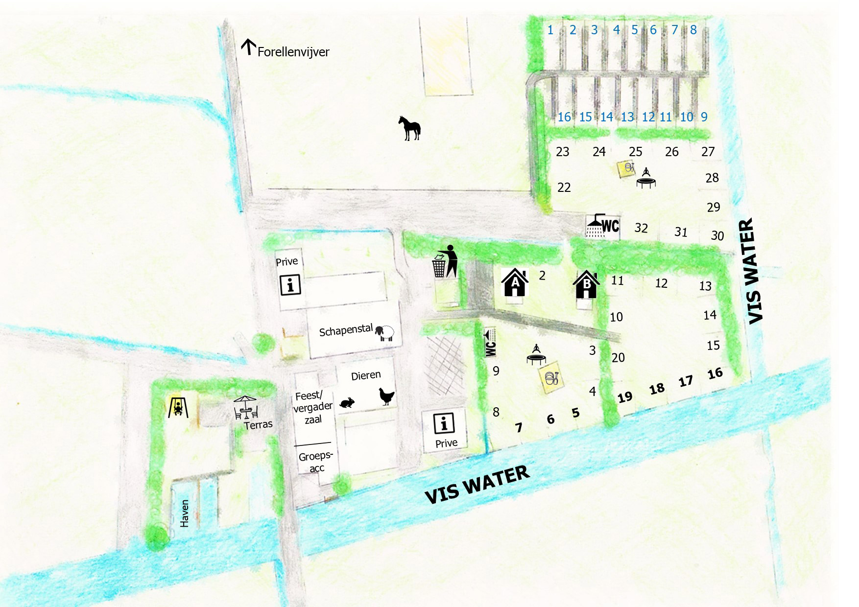 Der Campingplatz selbst vermietet Motorboote, verfügt aber auch über eine Trailer-Slipanlage für diejenigen, die ihr eigenes Boot mitbringen. Kinder können auf dem Bauernhof mithelfen, aber auch nach Herzenslust im Sandkasten, auf den Trampolinen und in den Go-Karts spielen. Die Kinder können auch regelmäßig Pony- oder Traktorfahrten unternehmen. Auf einer Wiese neben dem Campingplatz wurden zwei Teiche ausgehoben, in denen Sie Forellen angeln können. Camping de Blikvaart vermietet zwei einfach eingerichtete Ferienhäuser für 5/6 Personen mit eigenen Sanitäranlagen. Im Bauernhaus gibt es auch Gruppenunterkünfte für bis zu 22 Personen. In der Hochsaison können Sie in der Kantine oder auf der Terrasse einen kleinen Snack, ein Getränk oder ein Eis genießen.