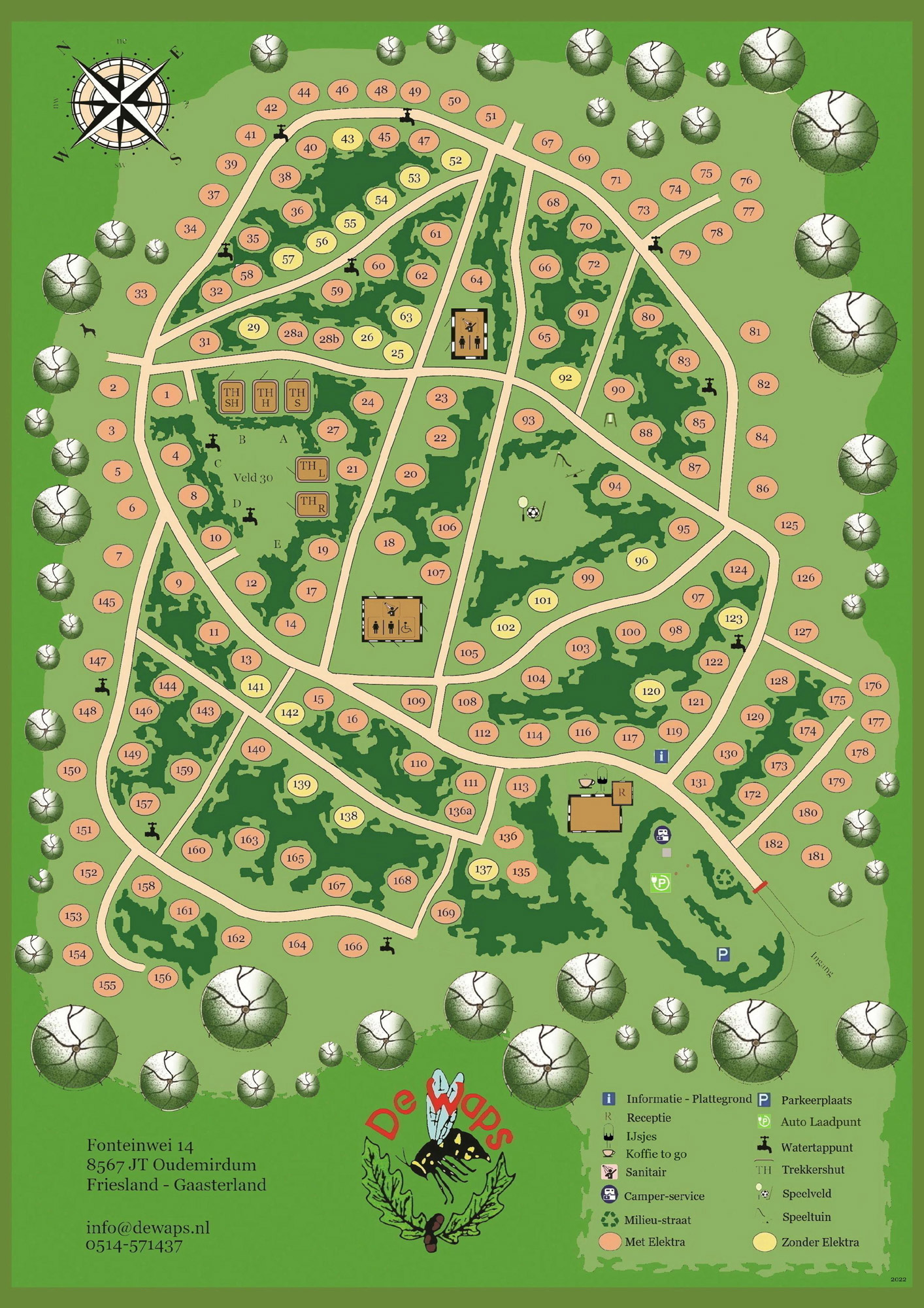 Camping De Waps ist ein ruhiger, übersichtlicher Campingplatz, der besonders bei Menschen beliebt ist, die Einfachheit und Natur lieben. Dieser Platz ist auch bei Wohnmobilisten sehr beliebt. Der Campingplatz ist das ganze Jahr über geöffnet und Sie können hier schon ab einer Nacht bleiben. Es gibt eine Servicestelle für Wohnmobile.