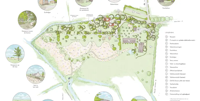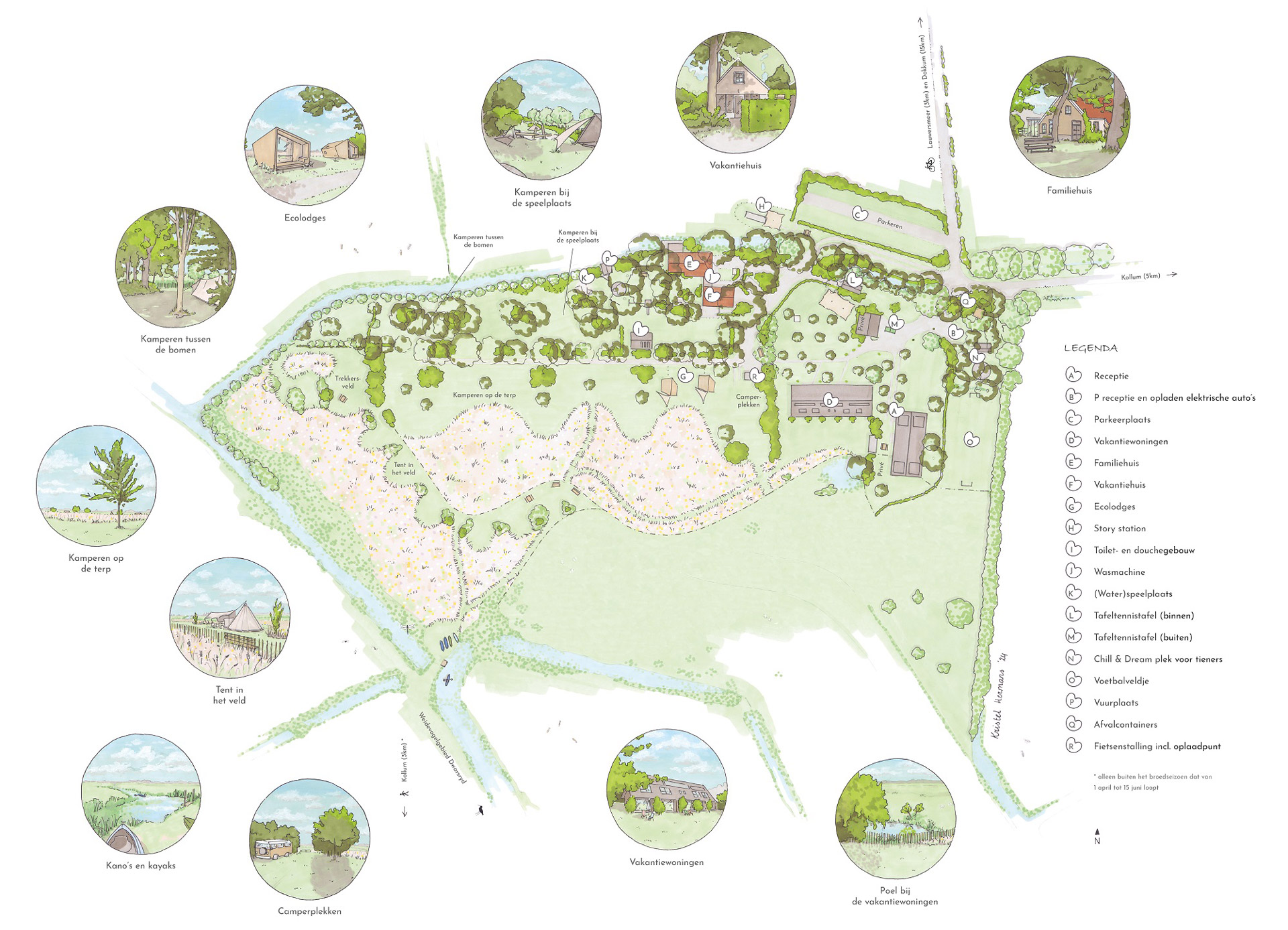 Auf dem Campingplatz herrscht eine entspannte Atmosphäre, es gibt keine festen Stellplätze, man steht einfach dort, wo das Gras gemäht ist. Mit nackten Füßen im Gras, auf dem Trampolin chillen, auf dem Wasserspielplatz spielen oder am Wasser eine Angel auswerfen. Der Campingplatz liegt nicht nur auf einer alten friesischen Anhöhe, sondern auch am Dwarsryd-Wasser. Auf dem Campingplatz stehen kostenlos Kanus und Kajaks zur Verfügung, um die Umgebung vom Wasser aus zu bewundern. Wenn Sie keine eigene Campingausrüstung haben oder Ihnen der Aufbau eines Zeltes zu mühsam ist, können Sie hier ein komplett ausgestattetes Tipi-Zelt, ein kleines Haus oder ein Klingelzelt mieten. In der überdachten Feuerstelle mit feinen Lounge-Kissen ist es Zeit für gute Gespräche, das Rösten von Marshmallows oder Tagträumereien in der Feuerstelle. Der Campingplatz ist autofrei und legt Wert auf Nachhaltigkeit, Respekt füreinander und die Natur.