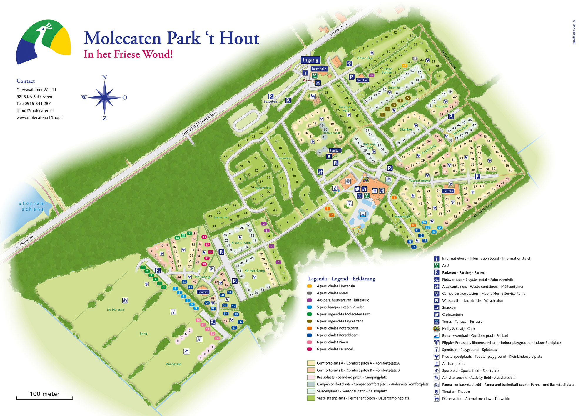 Molecaten Park ’t Hout ligt midden in de bossen op het drie provinciën punt bij het gezellige dorpje Bakkeveen. Op de camping geniet je van de rust, en er is van alles te beleven voor jong en oud.