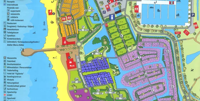 Die touristischen Stellplätze liegen alle dicht beieinander und Sie campen hier in der Nähe des Strandes von Makkum. Genießen Sie den Sonnenuntergang über dem IJsselmeer. Der Campingplatz ist Teil eines großen Erholungszentrums, in dem Sie alle Arten von Mietunterkünften von Chalets bis hin zu Luxusvillen finden. Für Wassersportler gibt es zahlreiche Einrichtungen vor Ort, aber auch an die Kinder wurde gedacht. Es gibt mehrere Spielplätze, ein Hallenbad, einen Streichelzoo, ein begeistertes Animationsteam und der Strand lädt zum Spielen ein. Für die Teenager gibt es einen Chill-Bereich. Du kommst mit einer Gruppe von Freunden? Sie können auch bowlen, Tennis spielen oder in einem der sechs Restaurants lecker essen gehen.