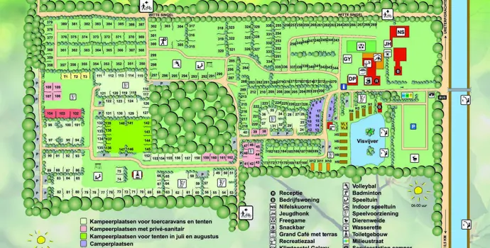 Für jede Art von Camper gibt es einen Platz. Egal, ob Sie mit einem Zelt oder einem Wohnmobil anreisen, oder ob Sie den Luxus privater Sanitäranlagen genießen möchten. Alle geräumigen Stellplätze befinden sich in einer waldreichen Umgebung. Außerdem gibt es verschiedene Unterkünfte zu mieten, von der Wanderhütte bis zum Safarizelt. Selbst wenn es einen Tag regnet, werden Sie auf diesem Campingplatz eine tolle Zeit haben. Es gibt einen großen Indoor-Spielplatz, ein Jugendzentrum und ein schönes großes Café mit knisterndem Kaminfeuer. Aber natürlich freuen wir uns, wenn die Sonne scheint, damit wir in eines der nahe gelegenen Freibäder gehen können. An allen regulären Feiertagen gibt es ein Unterhaltungsprogramm. Nehmen Sie an der Rätseltour, dem Bogenschießen, dem Theater oder der Lego-Schlacht teil! Das begeisterte Team lässt sich jeden Tag etwas anderes einfallen. Ansonsten spielen Sie mit Ihren neuen Campingfreunden im Panna-Käfig Fußball.