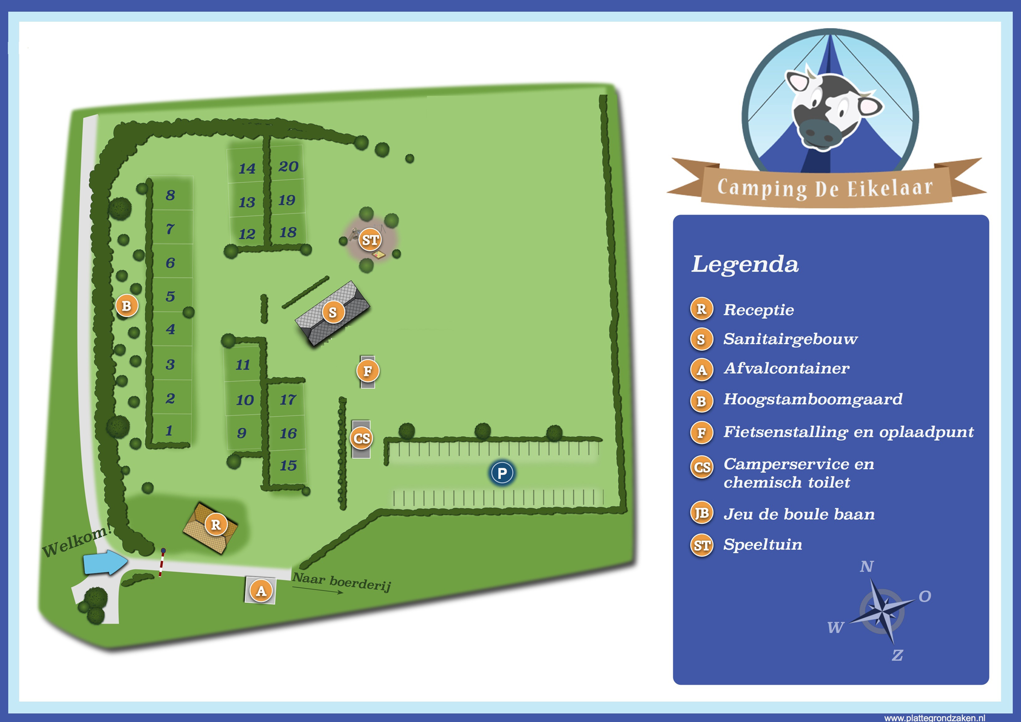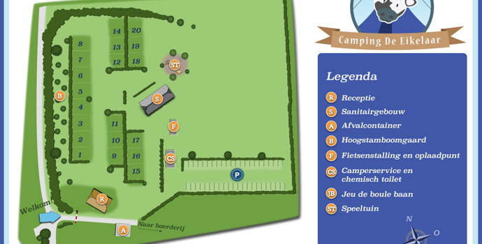 Camping de Eikelaar ist ein ruhiger Campingplatz in einem offenen Gebiet. Das Naturschutzgebiet der Overasseltse- und Hatertse-Moore ist zu Fuß erreichbar. Ideal für einen abwechslungsreichen Rad- oder Wanderurlaub an der Grenze von 3 Provinzen. Entlang der Flüsse Maas und Waal, über die Hügel von Groesbeek, im Obstgebiet Betuwe, die schönen Dörfer und Städte in Brabant, Limburg und Gelderland mit der Stadt Nijmegen in 8 km Entfernung.