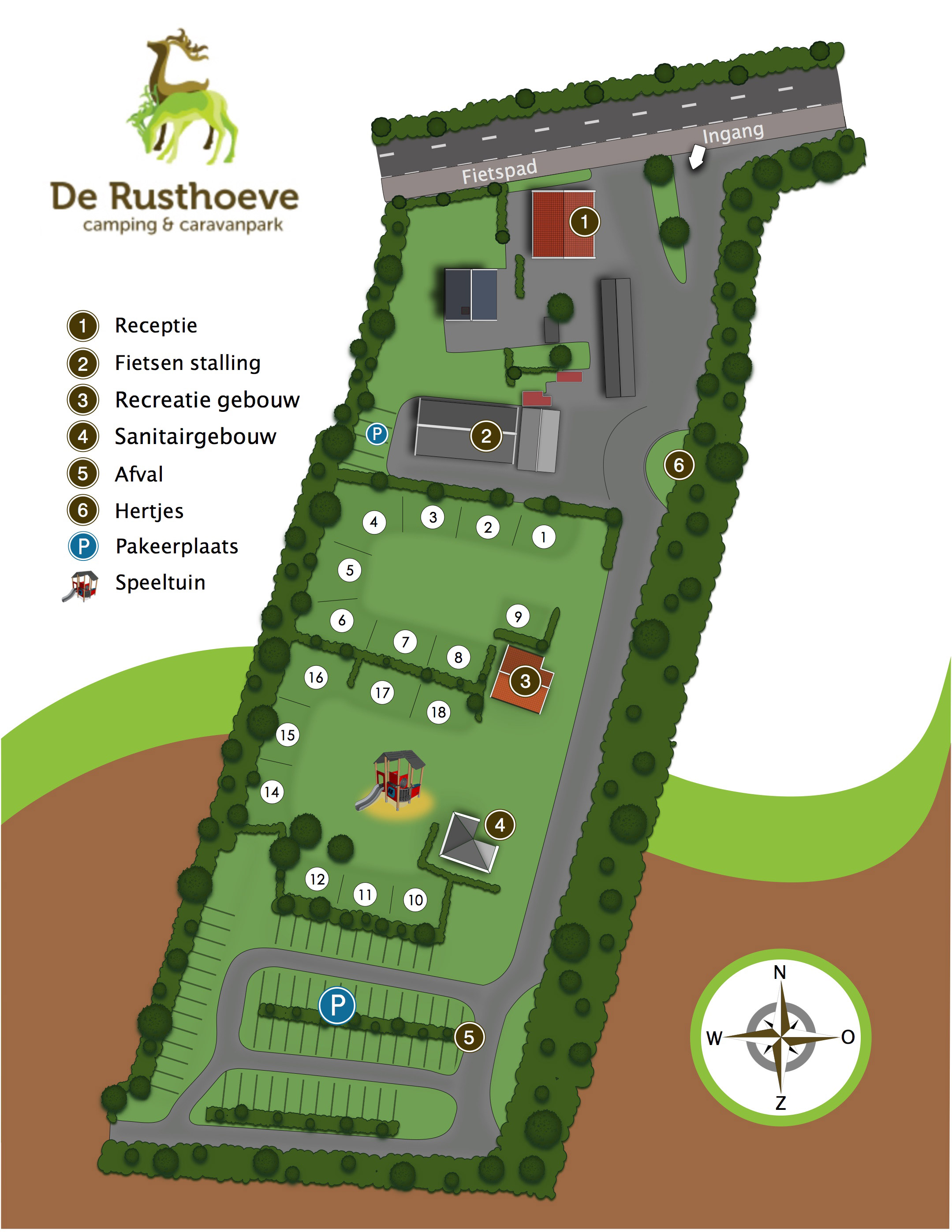 Der Campingplatz selbst hat schöne grasbewachsene Stellplätze und Ihr Stellplatz hat alle Annehmlichkeiten. Wie 16 Ampere Strom, zentrale Antenne, WiFi und natürlich ein sauberes und beheiztes Sanitärgebäude. Vom Campingplatz aus können Sie direkt in den Wald laufen oder an einer der Kreuzungen einen schönen Radweg nehmen. Es gibt sogar einen überdachten Abstellplatz für Ihr Fahrrad!