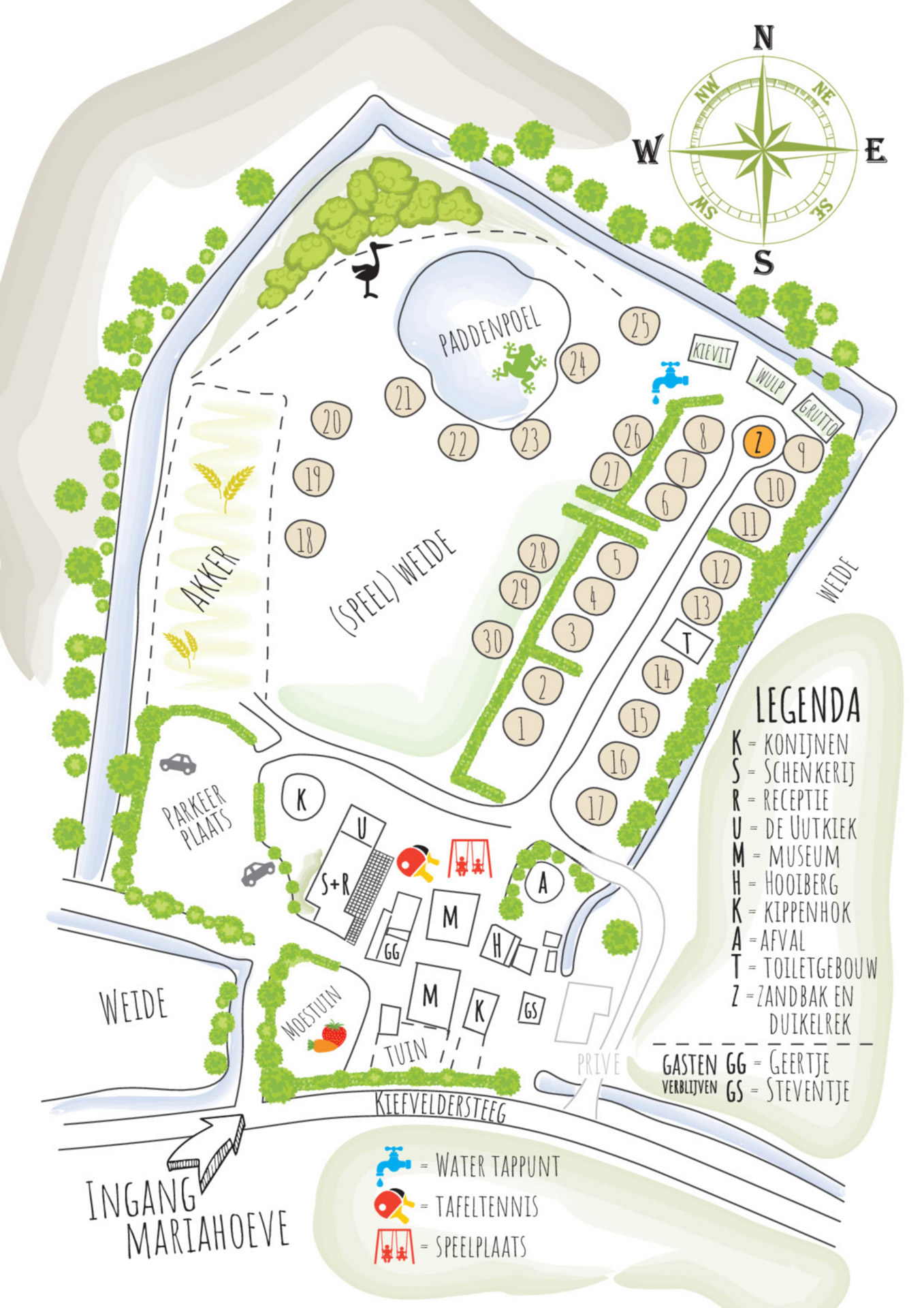 In der Nähe des Campingplatzes finden Sie ausgedehnte Wälder, Moorlandschaften und das Wasser der Randmeren Seen in nur 5 km Entfernung! In der Nähe finden Sie die gemütlichen Dörfer Putten und Ermelo. Auf dem gesamten Campingplatz gibt es kostenloses WIFI.