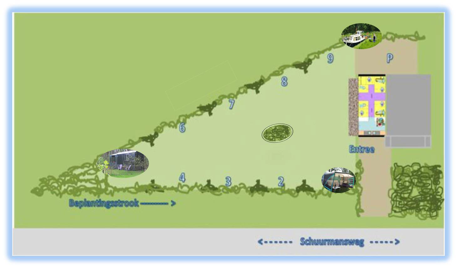 Der Campingplatz liegt 2 km von der Festungsstadt Groenlo entfernt, 500 m vom Fluss Slinge und inmitten vieler Rad- und Wanderwege. Camping ist möglich mit Zelt, Wohnwagen, kleinen Faltanhängern und Wohnmobilen (bis zu 7,5 m) für Erwachsene.