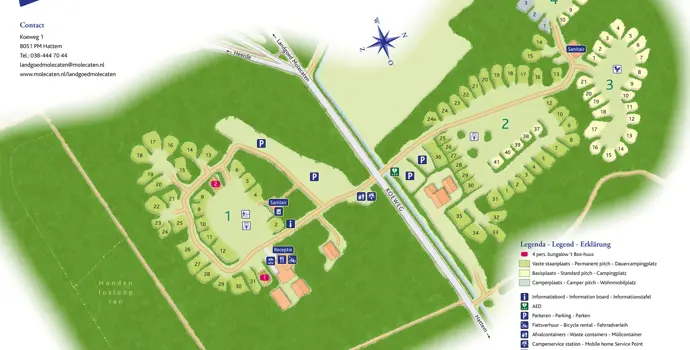 Im Molecaten Park De Leemkule (ca. 2 km entfernt) oder Molecaten Park De Koerberg (ca. 10 km entfernt) können Sie als Gast von Landgoed Molecaten das Schwimmbad kostenlos benutzen! In der Umgebung des Campingplatzes können Sie mit dem Fahrrad oder zu Fuß die Natur und die von Füchsen, Rehen und Wildschweinen bewohnten Wälder genießen.