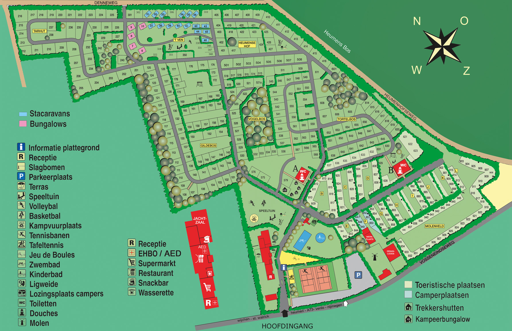 Heumens Bos ist ein kinderfreundlicher Familiencampingplatz in Rijk van Nijmegen, auf dem jeder seinen Urlaub genießen kann. Der bewaldete Park ist komplett ausgestattet. Es gibt beheizte Sanitäranlagen mit Familienduschen, Babyzimmer und behindertengerechte Einrichtungen, geräumige Stellplätze, einen großen Supermarkt, eine Snackbar, beheizte Freibäder, ein Restaurant, in dem Sie ein Menü à la carte genießen können. Kurzum, zu viel, um es zu erwähnen.