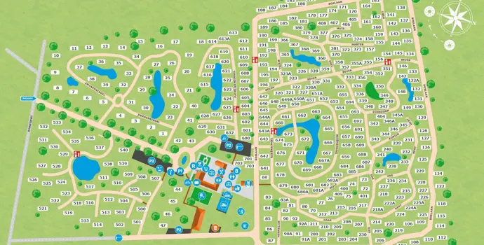 Um es vorweg zu nehmen: Sie haben die Qual der Wahl, denn es gibt nicht weniger als 55 Typen von Ferienhäusern. Das Schöne daran ist, dass wirklich jeder willkommen ist; es gibt Häuser für Behinderte, aber auch Häuser für große Familien (8 Personen). Auch Wellness-Fans kommen auf ihre Kosten, denn es gibt Häuser mit einer eigenen Sauna. Wie schön, dass hier jeder einen Spitzenurlaub genießen kann. Die Häuser sind alle freistehend und liegen in einem bewaldeten Gebiet, das von Wasser umgeben ist. Sie werden schnell feststellen, dass sich die meiste Lebendigkeit um das Zentralgebäude herum abspielt. Hier finden Sie alle gastronomischen Einrichtungen, einen Spielplatz, einen Sportplatz, den Kinderclub und den Tennisplatz. Für diejenigen, die es brauchen, gibt es auch einen Waschsalon.