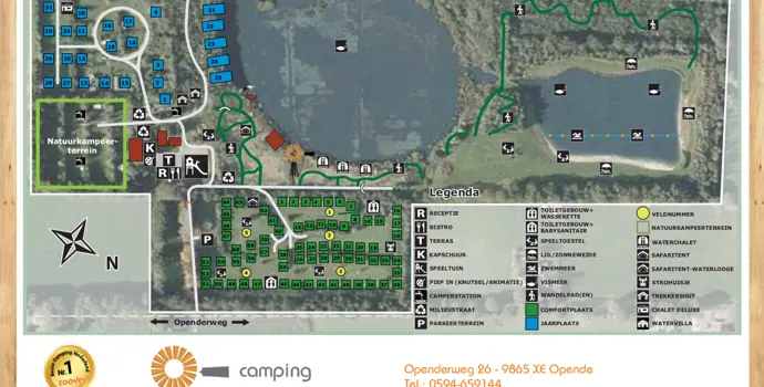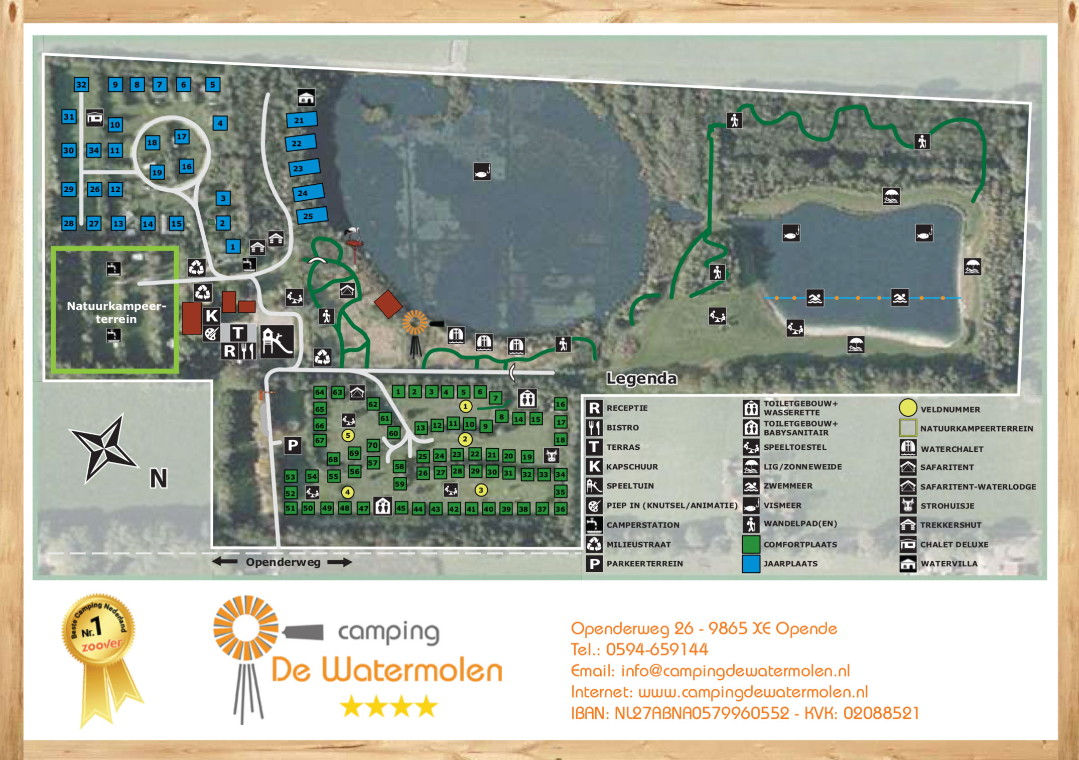 Camping de Watermolen befindet sich im Dorf Opende in Groningen. Der Campingplatz liegt mitten in der schönen Groninger Landschaft, an der Grenze zu Friesland. Auf diesem Campingplatz am Wasser mit Badesee und Angelsee können Sie die Ruhe, die Weite und die schöne Natur Groningens in vollen Zügen genießen. Außerdem wurde dieser Campingplatz 2016 und 2017 zum besten Campingplatz der Niederlande gewählt.