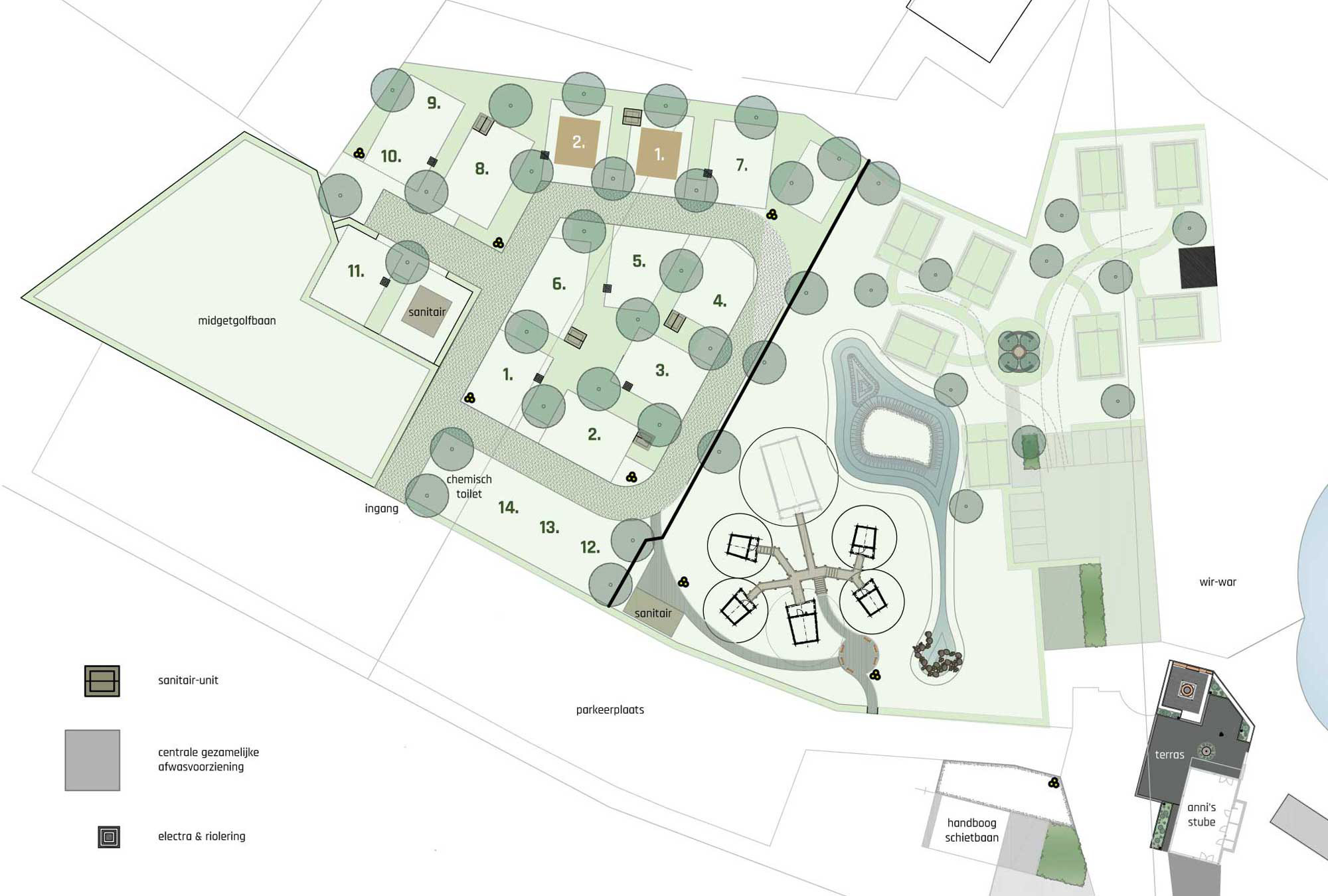 Camping de oude stokerij bietet schöne Stellplätze mit der Möglichkeit, private Sanitäranlagen zu buchen. Besitzer von Wohnmobilen sind ebenfalls willkommen, und Sie können Ihren vierbeinigen Freund gerne mitbringen. Anni's stube' ist von Freitag bis Sonntag geöffnet. Hier kann man in deutscher/österreichischer Atmosphäre gut essen und trinken. Mit einer Dito-Speisekarte!
