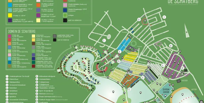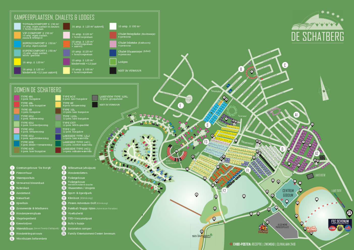 De Schatberg ist ein vielseitiger Fünf-Sterne-Ferienpark in Sevenum. Ein Ort, an dem Sie sich das ganze Jahr über amüsieren können. Eine einzigartige Lage in der natürlichen Umgebung des schönen Nord-Limburg Peel. Der Ferienpark bietet eine große Auswahl an Unterkünften und Campingplätzen und verfügt über Einrichtungen, Aktivitäten und viele Annehmlichkeiten für Jung und Alt.