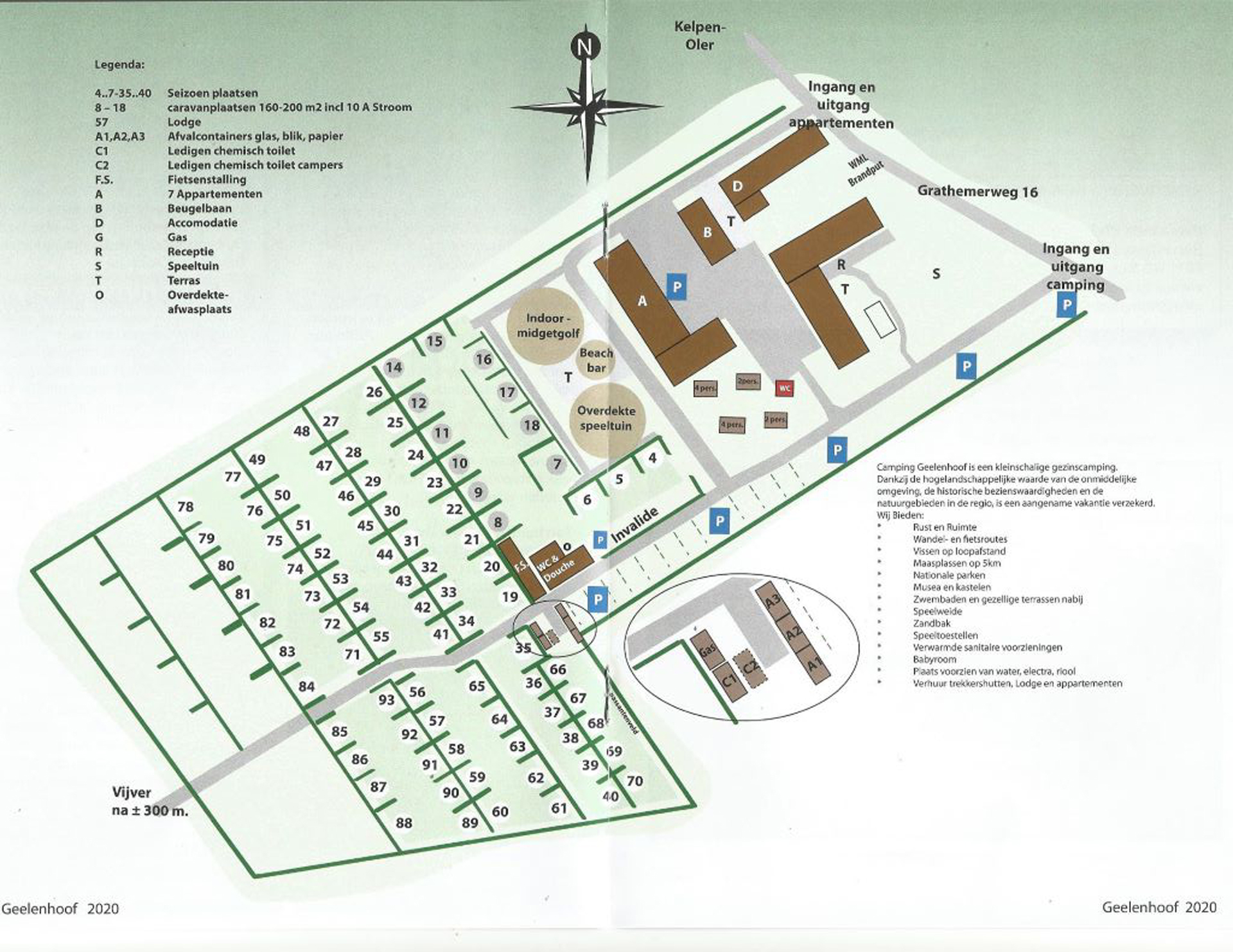 Sie finden hier autofreie Comfort-Stellplätze von 120 m2 mit Wasser-, Strom- und Abwasseranschluss auf dem Stellplatz. Die Stellplätze sind durch Hecken voneinander getrennt. Die Stellplätze für Wohnwagen haben sogar eine gepflasterte Terrasse für Ihr Vorzelt. Einige Stellplätze sind 200 m2 groß und verfügen über einen 10-Ampere-Stromanschluss. Für Camper gibt es die Möglichkeit, ihre Chemietoilette oder ihren Abwassertank zu entleeren. Auch große Wohnmobile sind auf dem Camping Geelenhoof willkommen.