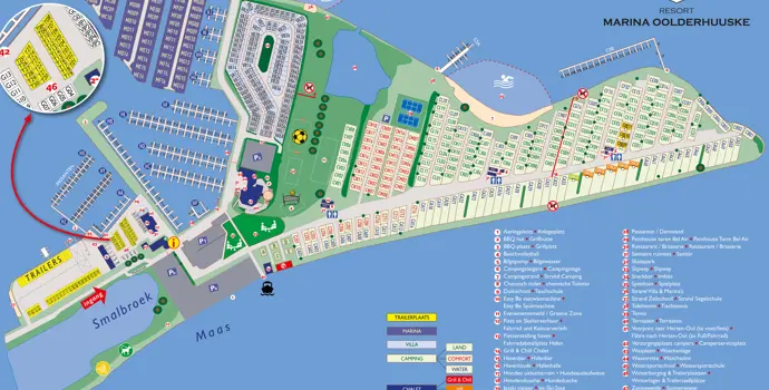 Der Campingplatz verfügt über einen eigenen Fährdienst, der in der Hochsaison verkehrt. Vom Park aus können Sie dann leicht das Dorf Ool erreichen. Von Ool aus sind es nur 4 Kilometer bis Roermond. Von Ool aus können Sie dem Radwegenetz Midden-Limburg folgen. Der Campingplatz ist auch ideal gelegen für einen Tagesausflug nach Belgien oder Deutschland. Auch die weiße Stadt Thorn ist einen Besuch wert. Möchten Sie lieber in der Nähe des Campingplatzes übernachten? In der Nähe des Campingplatzes können Sie ein Boot besteigen und eine Rundfahrt auf den Maasplassen machen. Oder setzen Sie sich auf eine Bank im Jachthafen, es gibt immer etwas zu sehen!