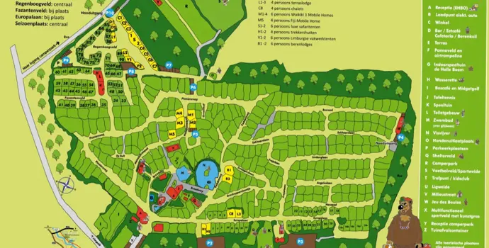 Wenn Sie z.B. einen Platz am Waldrand bevorzugen, wählen Sie die Stellplätze an der Europalaan. Wenn Sie Ihren Urlaub lieber auf einem sonnigen, parkähnlichen Teil des Campingplatzes verbringen möchten, sind das Fasanenfeld oder das Regenbogenfeld eine gute Wahl. Wenn Sie keine Campingausrüstung haben und zelten möchten, vermietet der Campingplatz auch verschiedene Unterkünfte.