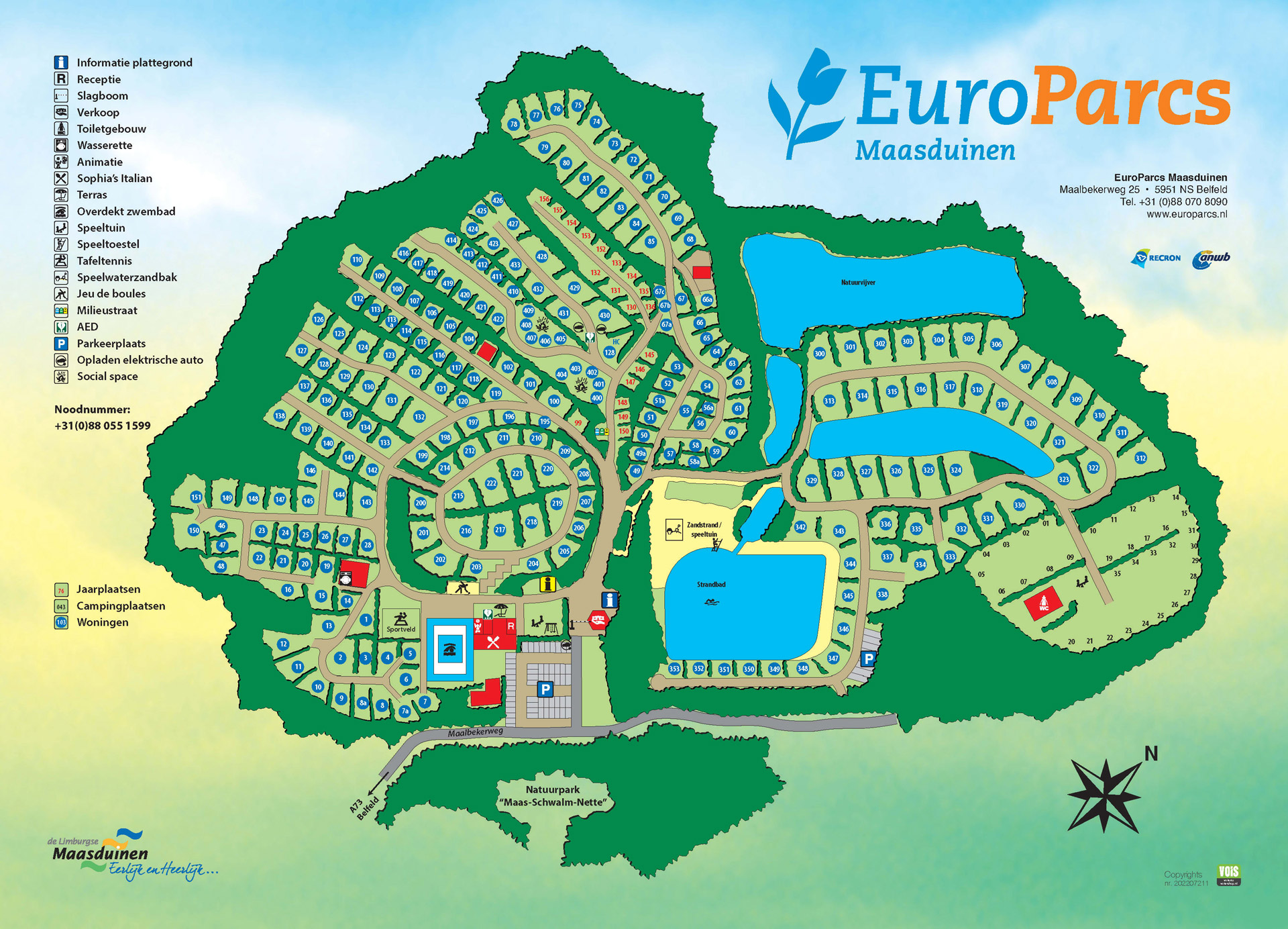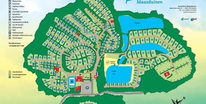 Der Campingplatz befindet sich in der Nähe des Naturschutzgebietes De Maasduinen. Die Stellplätze befinden sich auf einer offenen Campingwiese. Es gibt einen Outdoor-Fitnesspark. Die Umgebung bietet viele Möglichkeiten zum Wandern und Radfahren. Es gibt einen leicht abfallenden Sandstrand mit einigen Spielgeräten rund um einen kleinen See.
