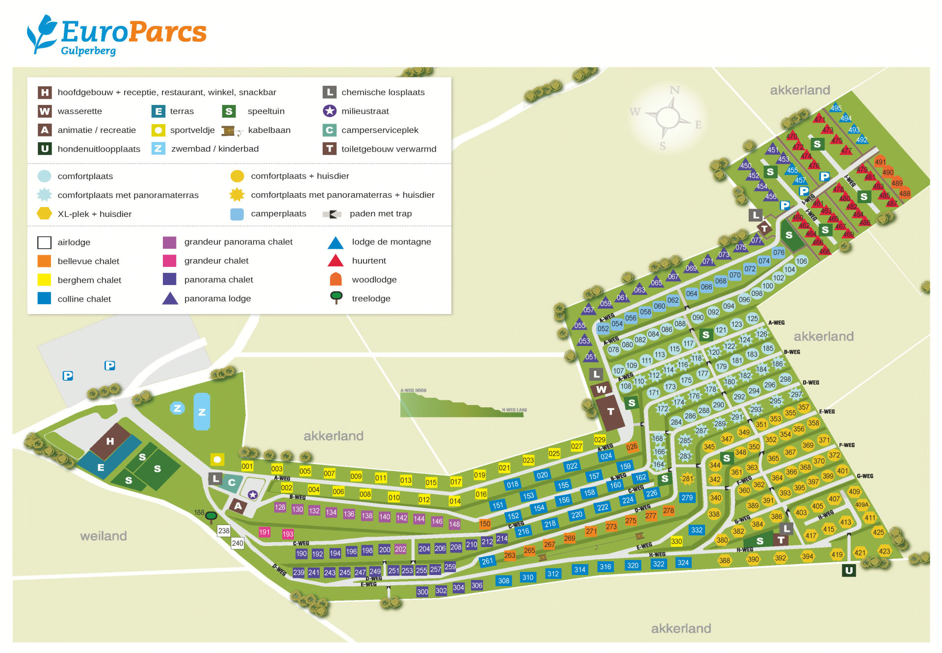 Auf diesem Campingplatz, der zu einem größeren Europarcs-Ferienpark gehört, können Sie das ganze Jahr über campen. Wählen Sie einen Stellplatz mit Aussicht, einen Stellplatz mit Panoramaterrasse oder einen Xl-Stellplatz. Wenn Sie das Wintercamping ausprobieren möchten, sind Sie hier genau an der richtigen Adresse. Beheizte Sanitäranlagen, Zugang zu einem subtropischen Badeparadies und fantastische Weihnachtsmärkte in der Nähe. Professor Bergje und das Animationsteam sorgen in allen Ferien für ein unterhaltsames Programm. Am Eingang finden Sie das Hauptgebäude mit Rezeption, Shop, Snackbar und Restaurant mit Terrasse. Von der Terrasse aus haben Sie einen Blick auf den großen Spielplatz. Über den Campingplatz verstreut gibt es noch mehr tolle Spielplätze.