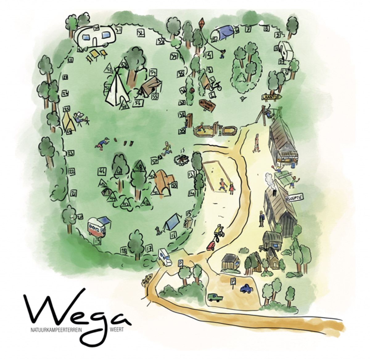 Der Naturcampingplatz Wega befindet sich im flachen Mittellimburg. Er liegt am Rande von Weert, innerhalb des Grenzparks/Naturreservats Kempen-Broek. Rund um Wega gibt es viele Wander- und Fahrradrouten.