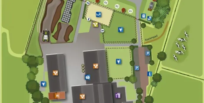 Auf dem Bauernhof van 't Zandeind ist immer etwas los. Folgen Sie einem Kälber- oder Kuhkuschelworkshop, der einzigartig ist! Bauer Jos hat einige spezielle Rassen, die sehr sanft und ruhig sind, so dass dies möglich ist. Vor dem Campingplatz befindet sich ein monumentaler Bauernhof mit einem Bauernhofmuseum. Bauer Jos organisiert regelmäßig Filmabende und andere Ausflüge. Vom Campingplatz aus können Sie direkt nach Riel laufen. Hier können Sie Ihre täglichen Einkäufe erledigen, aber auch gut essen gehen.