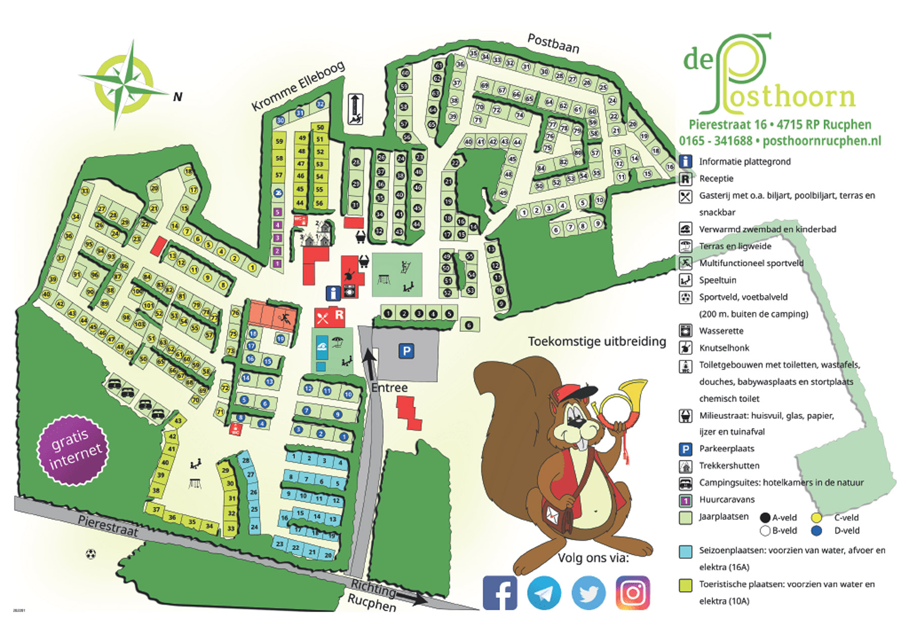 Weiter geht es zu einem ruhigen, geräumigen Campingplatz, der etwas versteckt am Rande der großen Wälder liegt. Dieser schöne Platz heißt Posthoorn. Er liegt in Westbrabant. Die Umgebung ist sowohl waldreich als auch ländlich. Ein wirklich schöner Ort zum Radfahren, Wandern und Entspannen.